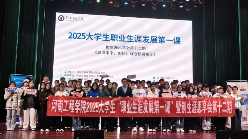 10月27日晚上,我校在龙湖校区创新创业中心大礼堂举办2025“职业生涯发展第一课”暨第十二期创生涯思享会,本次活动由创新创业学院主办,职业生涯发展协会、黑苹果青年社团、职说心语工作室联合承办,河南·郑在职聘创始人赵荣,我校第四届职业生涯导航计划朋辈导师卢波峰、韩笑颜,就业指导副教授叶心宇,与500余名低年级学生一起参加活动。