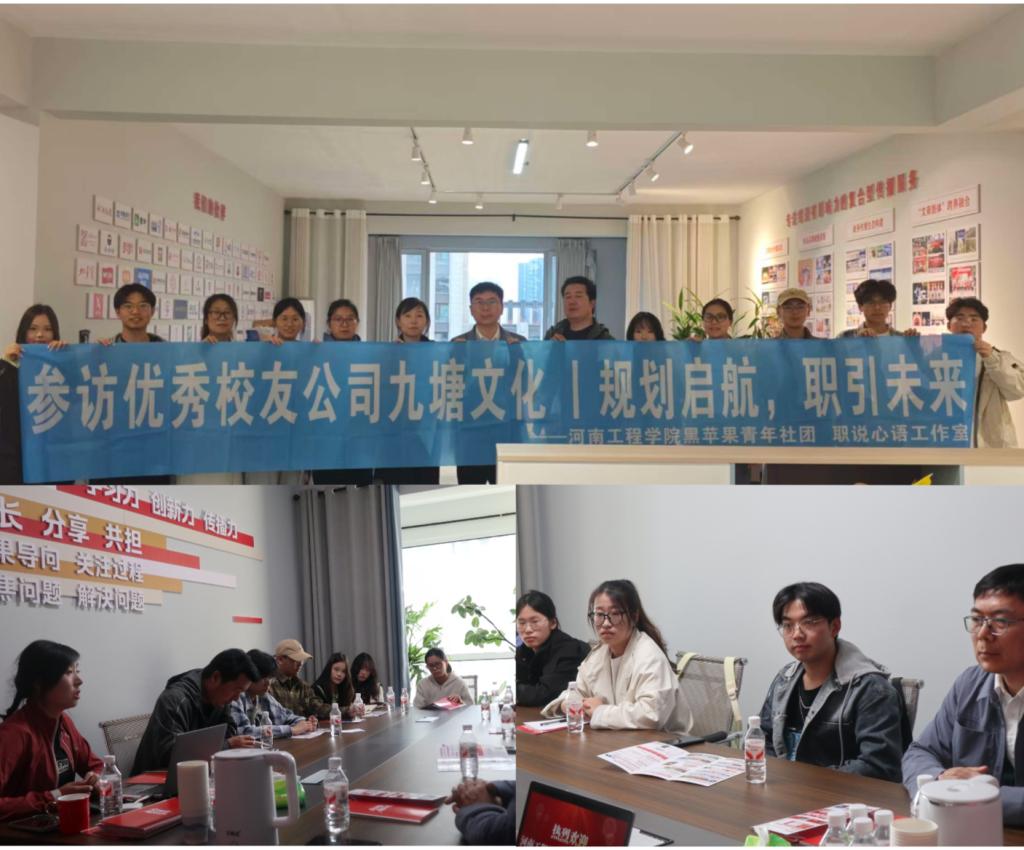 为深化生涯教育实践,搭建校企联动育人桥梁,3 月 28 日下午,创新创业学院黑苹果青年社团学子在指导老师叶心宇的带领下,走进校友企业河南九塘文化传媒有限公司开展参访交流活动。本次活动同时也是河南工程学院叶心宇劳模创新工作室(职说心语工作室)助企行系列专题活动之一。